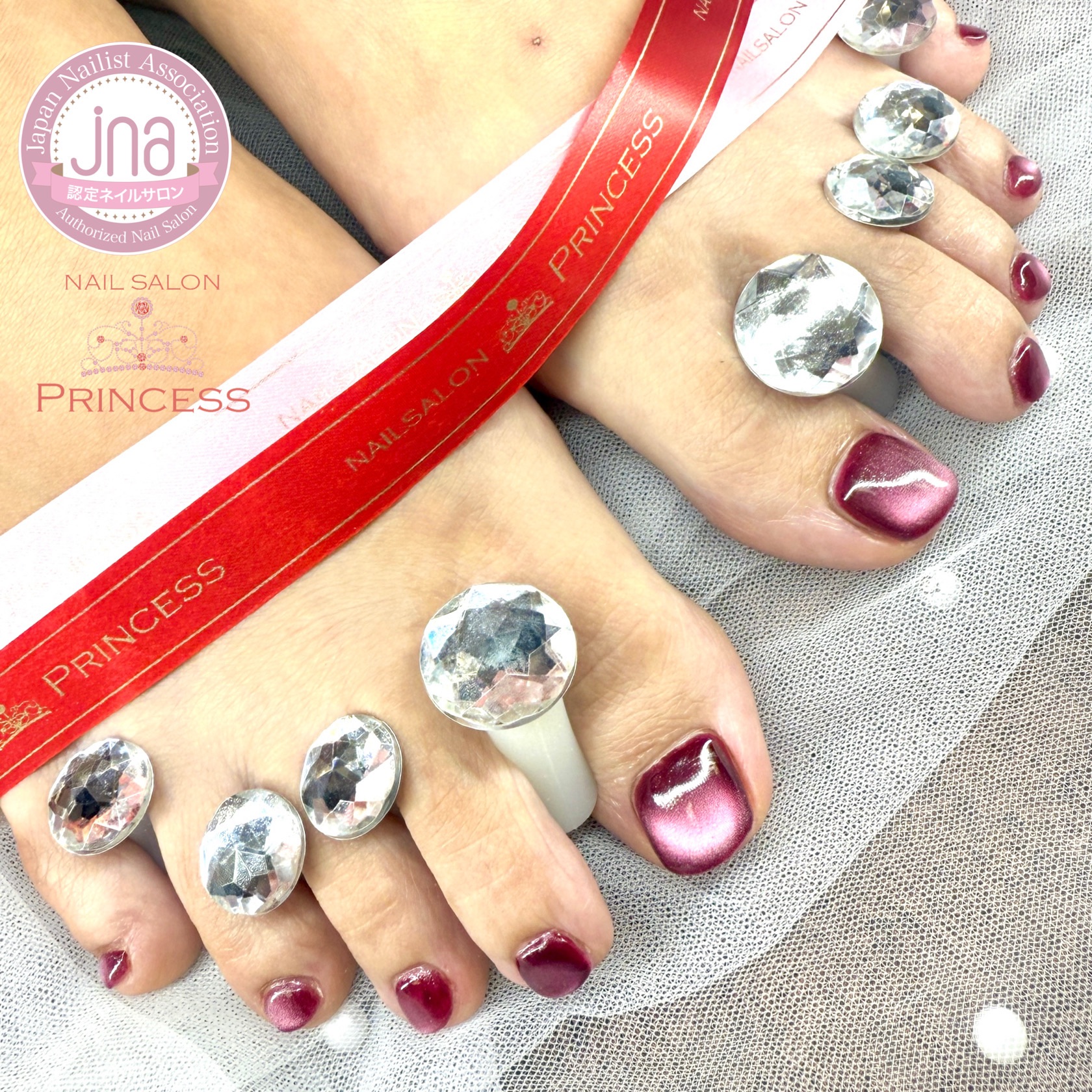 つくばみらい市ネイルサロン フットネイル 秋ネイル ボルドーマグネット ネイルサロンプリンセス
