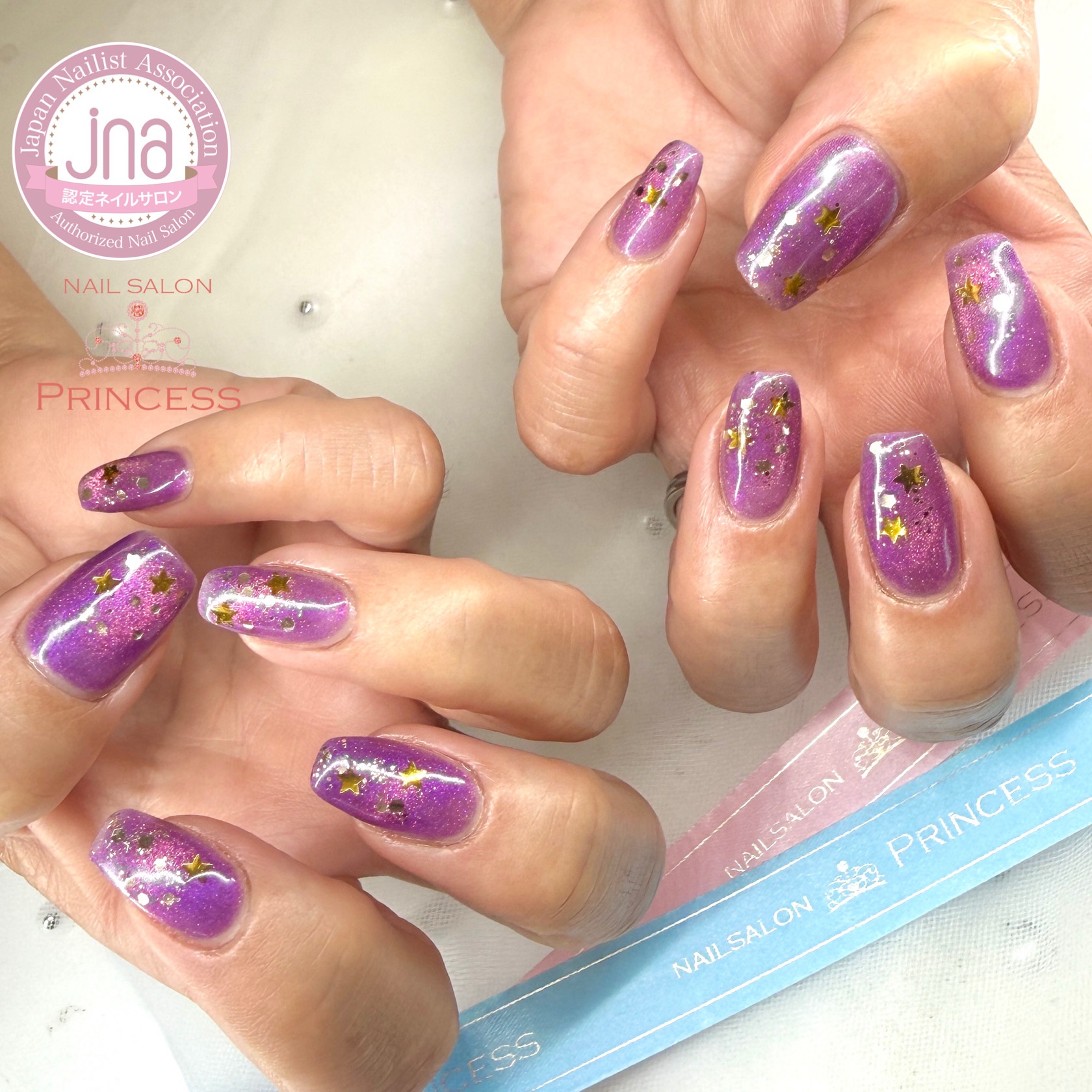 ハロウィンを意識してパープルマグネットにキラキラのホログラムと星のホログラムを乗せました^^