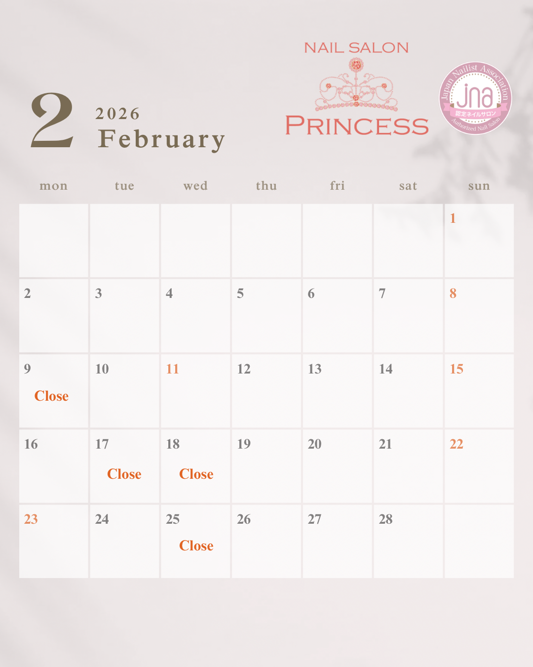 2月は9日(月)、17日(火)、18日(水)、25日(水)を休業日とさせていただきます。