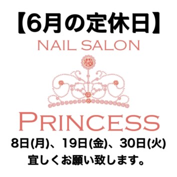 つくばみらい市にあるネイルサロンプリンセスです。 いつもネイルサロンプリンセスにご来店いただきましてありがとうございます。 現在コロナ対策徹底の上、営業しております。 6月の定休日のお知らせです。 6月は8日(月)、19…