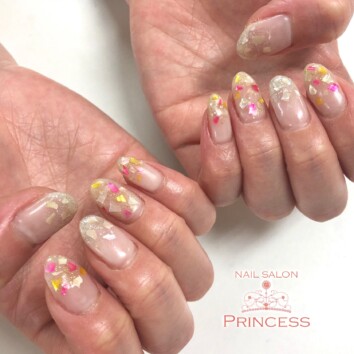ネイルサロンプリンセスにご来店いただきましてありがとうございます。 本日、ご来店のO様のネイルです。 今回はカラフルなクラッシュシェルを埋め込んだキラキラネイルです。 クラッシュシェルとは本物の貝殻を砕いてカラフルな色を…