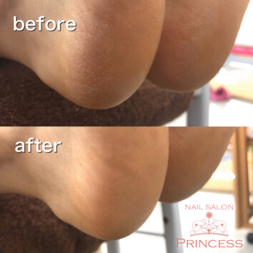 ネイルサロンプリンセスにご来店いただきましてありがとうございます。 本日は足裏の角質ケアをご希望のO様。 角質を柔らかくしてから除去し、しっかりパックとトリートメントをします。 乾燥した足裏がしっとりふわふわになりますよ…
