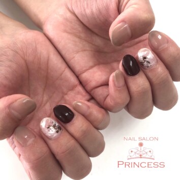 いつもネイルサロンプリンセスにご来店いただきましてありがとうございます。 本日ご来店のK様のネイルです。 今回はベージュのグラデーションネイルと白のニュアンスネイルを合わせました。 透明感あるニュアンスが可…